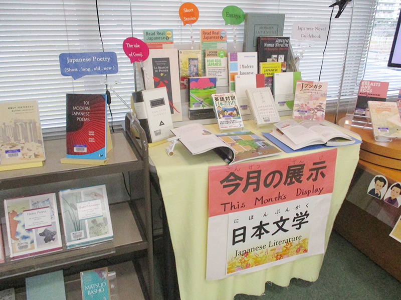 The theme of December's monthly display is "Japanese Literature". In recent years, Japanese novels have grown in popularity overseas, with many works being translated. The library is displaying books related to Japanese literature, with a primary focus on novels. The display includes recently translated novels, as well as The Tale of Genji and works by Yukio Mishima and Junichiro Tanizaki. Please come and peruse them in the library!