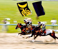 The Soma-Nomaoi Festival is said to have its origins in the military training exercises undertaken by samurai warriors, in which wild horses were used to simulate enemy forces. The ritual event that the exercises have developed into has now been designated as an Important Intangible Folk Cultural Property, and is held in late July each year. In the wake of the Great East Japan Earthquake in 2011 there were concerns that the event might not be hosted; however, when the festival was successfully held once again on a reduced scale a mere five months after the earthquake in spite of the damage, it provided a tremendous boost to the morale of local people in the area as a symbol of the regeneration of Fukushima, attracting an even more enthusiastic following than before. Around 450 horses were entered this year, bringing the event back to approximately the scale it had enjoyed prior to the earthquake.