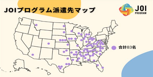 国際交流基金(JF)日米センターでは、「ふれる。つながる。世界が広がる。」をキャッチフレーズに、米国において地域に根ざした日米交流を進めるため日本人コーディネーターを2年間派遣しています(プログラム名:「JOI(ジョイ)プログラム」 、英名: Japan Outreach Initiative、和名: 日米草の根交流コーディネーター派遣プログラム)。