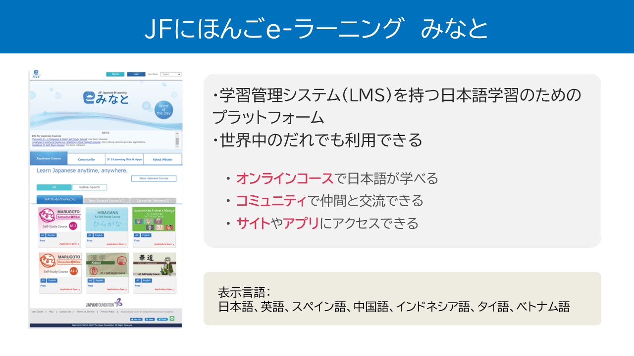 - ますます発展中!「JFにほんごeラーニング みなと」
