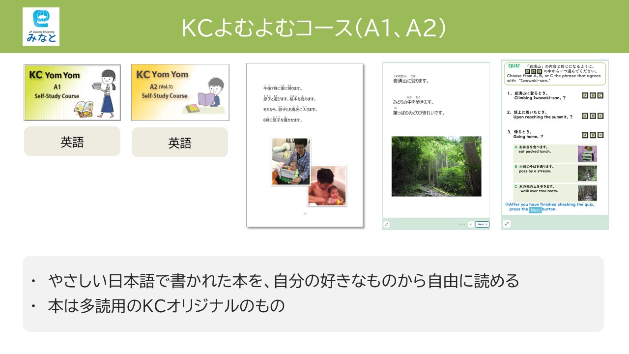 「みなと」は自学自習のための日本語学習プラットフォームですが、教育機関や日本語教師の方々にも各々の授業等に合わせてご利用いただけます。関西国際センター(KC)開発eラーニング教材の使い方については、以下をご参照ください。