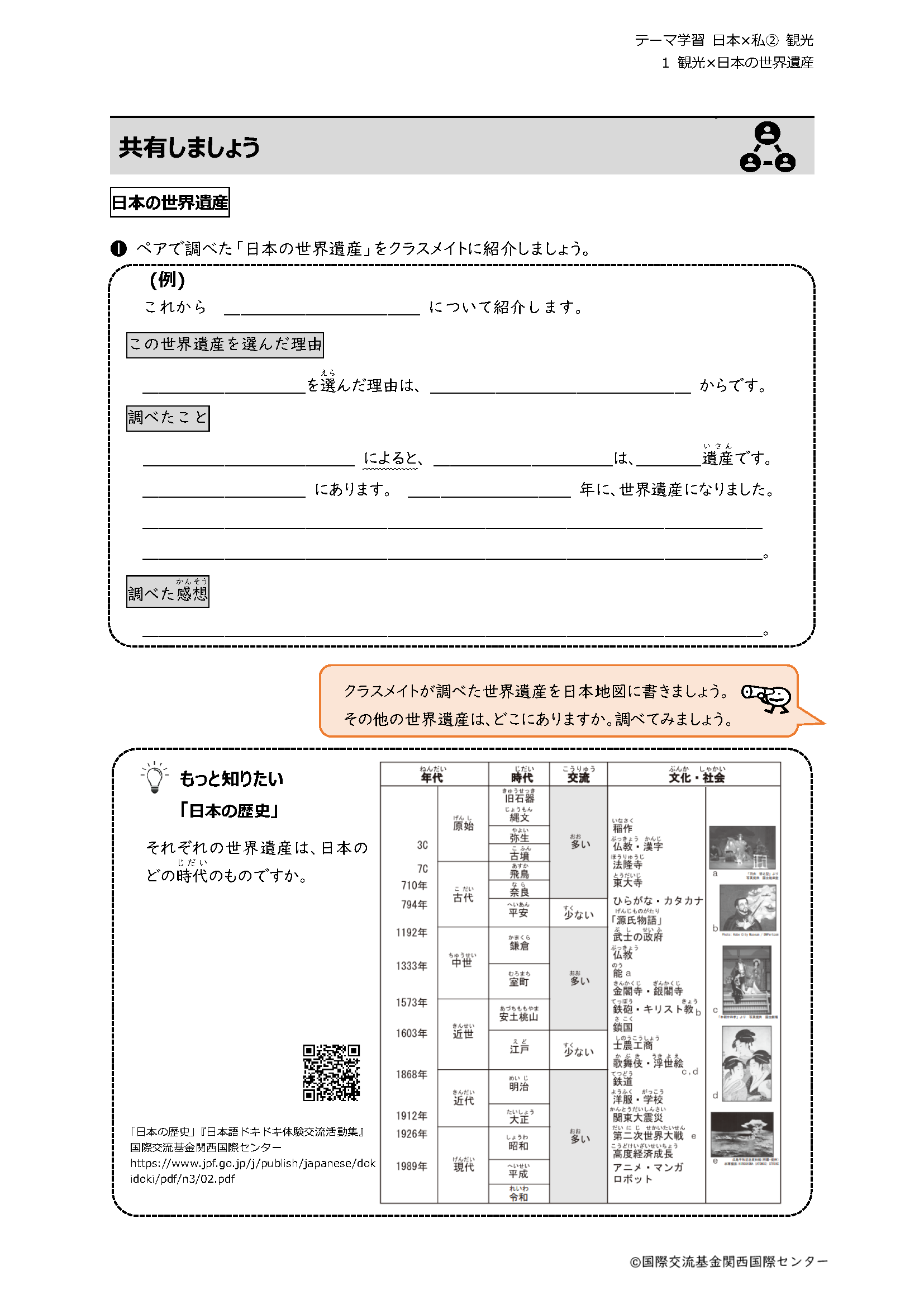 - (2)日本の社会・文化、自分の社会・文化の両方に対する気づきと理解を深める